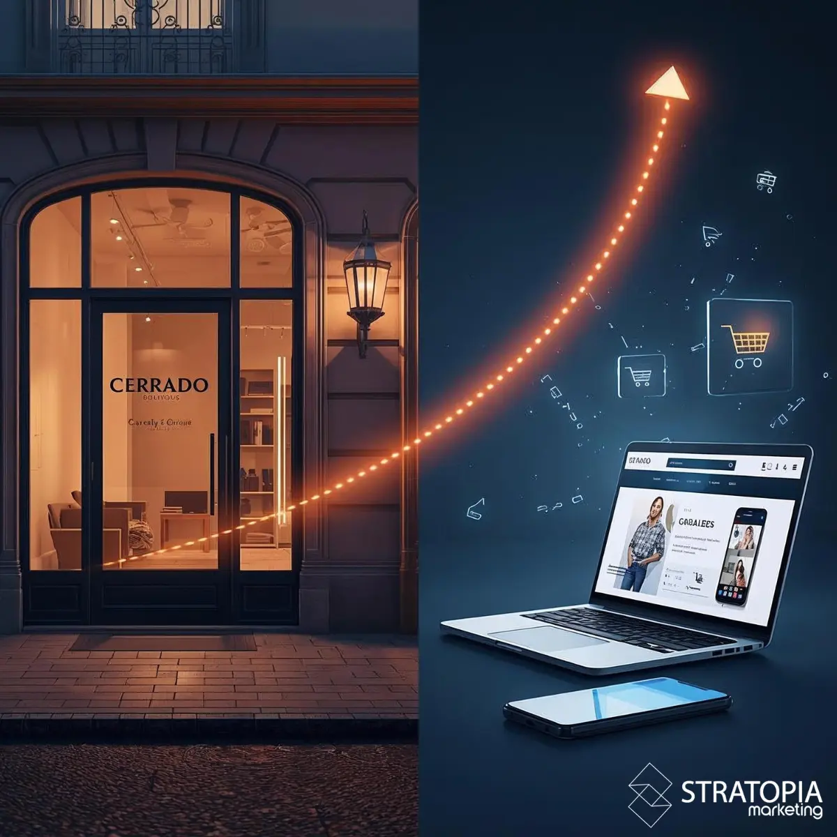 Tu escaparate funciona, ¿pero te imaginas vender las 24 horas? Pasa de tu tienda física al éxito online con Stratopia Marketing